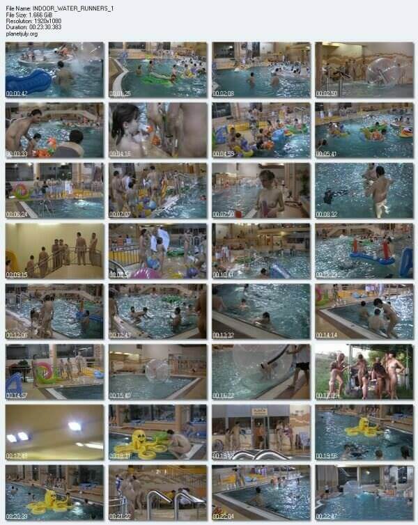 Nudism in the pool, indoor water runners 1 Full HD video.