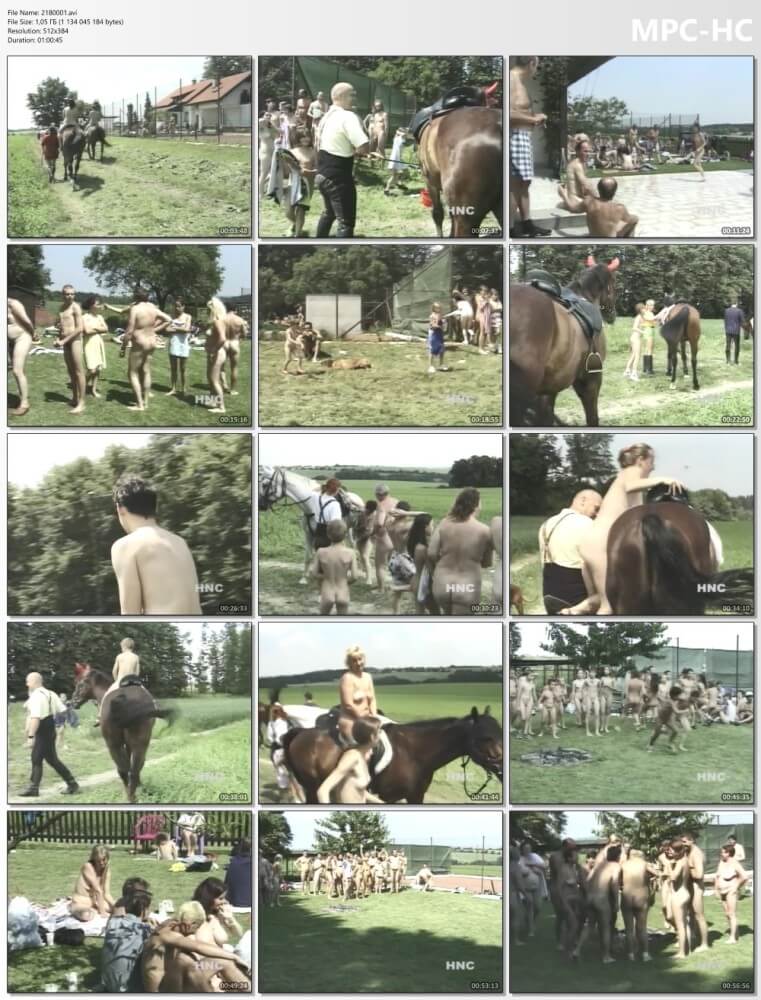 Nudists in natural surroundings acquire the skill of horseback riding through high-quality video.